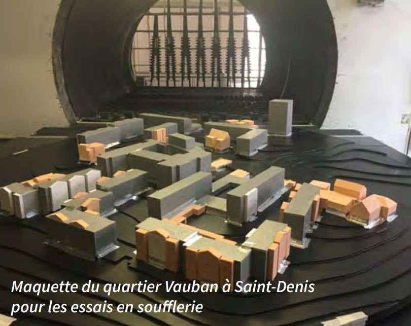 Les essais en soufflerie ont également permis de proposer des agencements à l’échelle urbaine afin d’améliorer le champ de vitesses au niveau du sol tout en améliorant le potentiel de ventilation naturelle des bâtiments en rénovation.